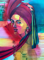 - Portretten in acrylverf. De ondergrond krijgt vaak een structuur waaruit de basis van het werk ontstaat. In transparante lagen wordt een portret opgebouwd waarin elke laag zichtbaar blijft en waardoor mooie kleuren ontstaan. Door toevoegingen met sjablonen en spuitbussen ontstaat een uniek portret.