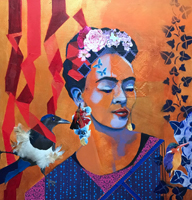 - Portretten in acrylverf. De ondergrond krijgt vaak een structuur waaruit de basis van het werk ontstaat. In transparante lagen wordt een portret opgebouwd waarin elke laag zichtbaar blijft en waardoor mooie kleuren ontstaan. Door toevoegingen met sjablonen en spuitbussen ontstaat een uniek portret.